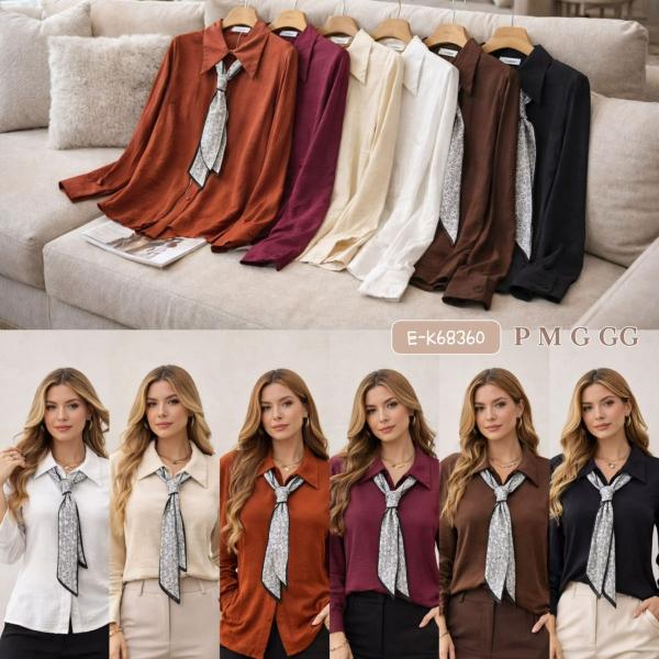 Camisa de viscolinho com lenço estampado --IMPORTADO