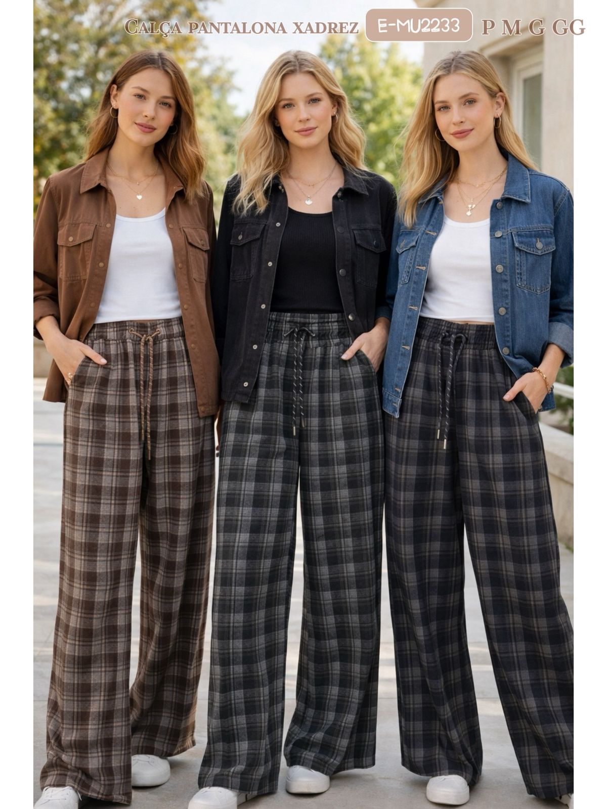 Calça pantalona xadrez com flanelado --IMPORTADO
