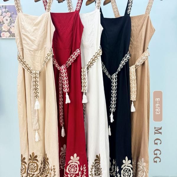 Vestido longo de linho bordado --IMPORTADO