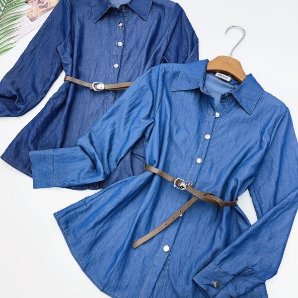 Camisa Comprido de jeans +cinto (premium ) leve toque macio --IMPORTADO