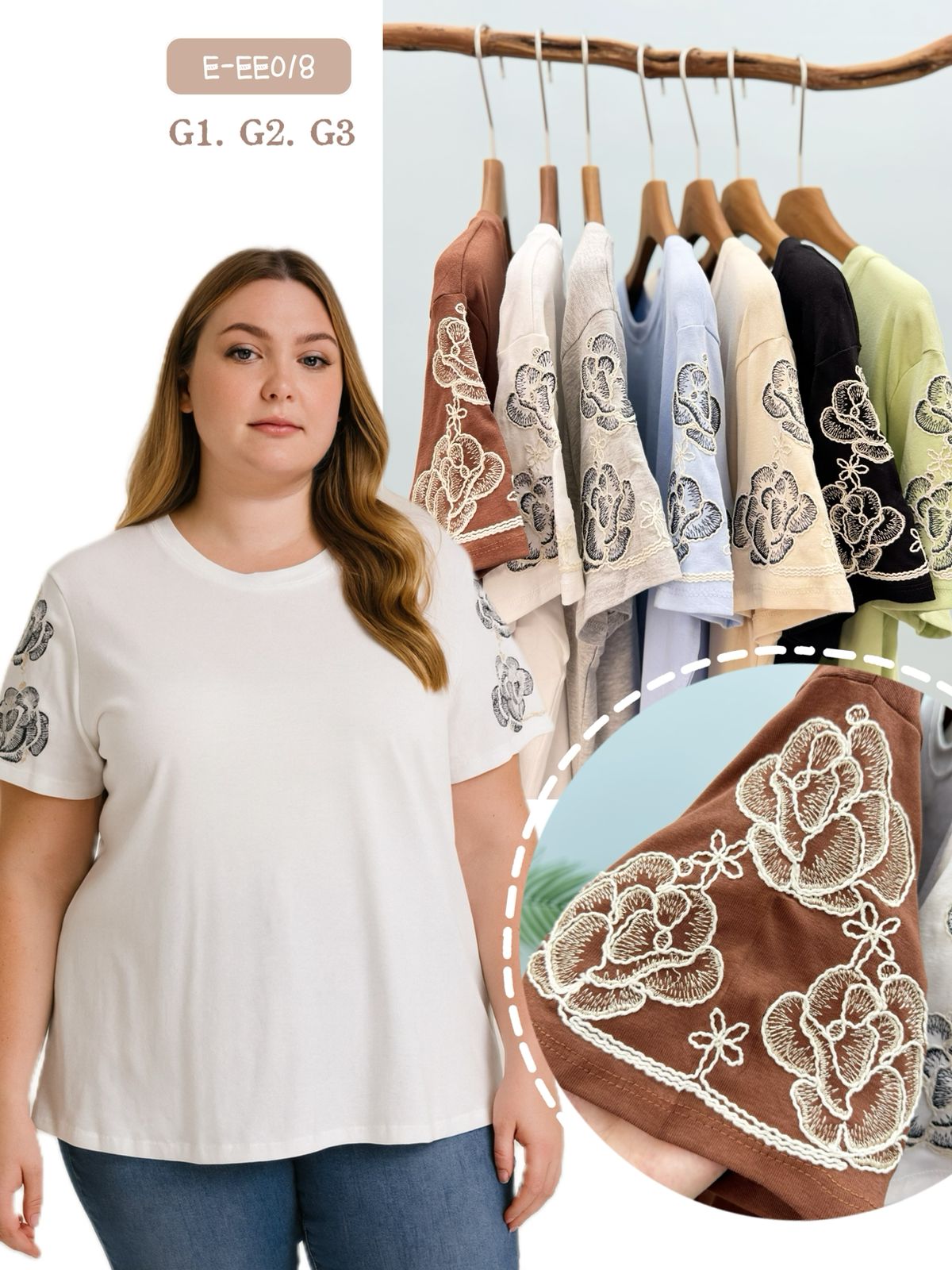 T-shirt PLUS de algodao bordado --IMPORTADO