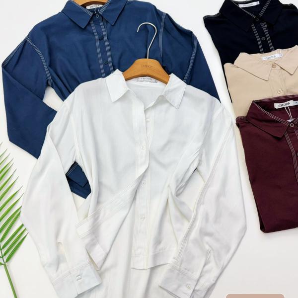 Camisa de linho (pesponto contrastante) --IMPORTADO